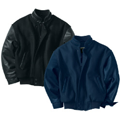 68002 Melton Leather Jacket with Standard Collar Melton wool jacket with leather sleeves Leather detail on collar and pocket welts Rib knit cuffs with waistband Snap front closure Full linimg Inside pocket Call for most recent pricing